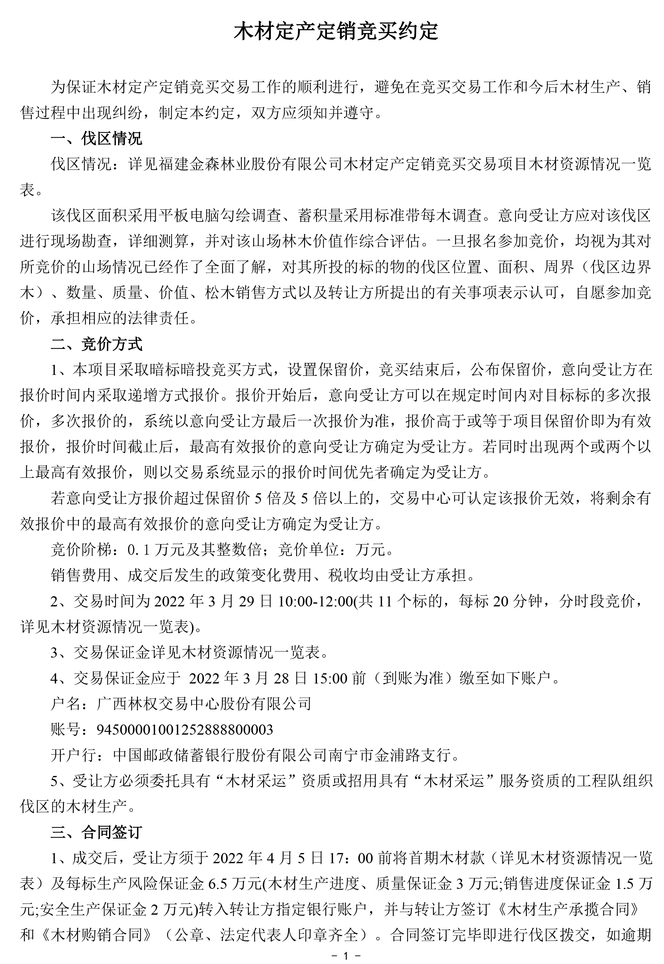 20220329(周二)福建金森林業(yè)股份有限公司木材定產(chǎn)定銷競買交易項目