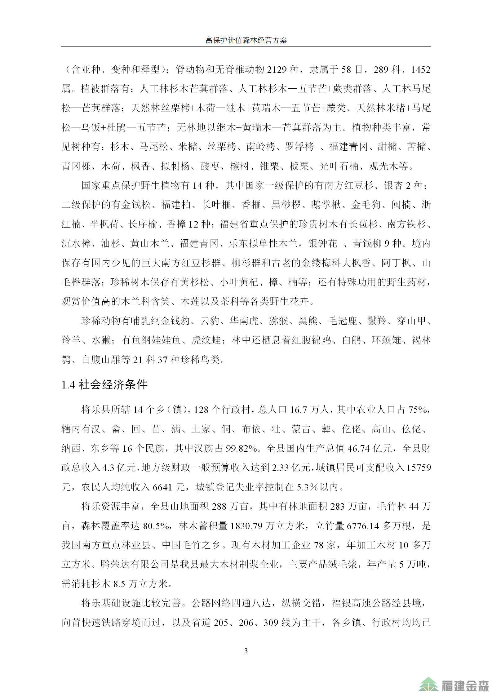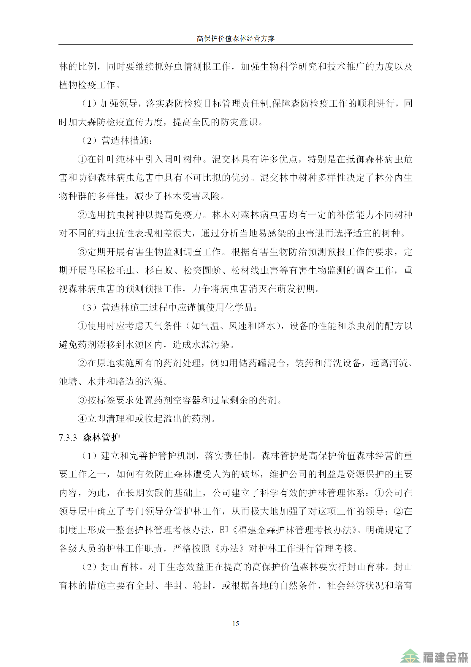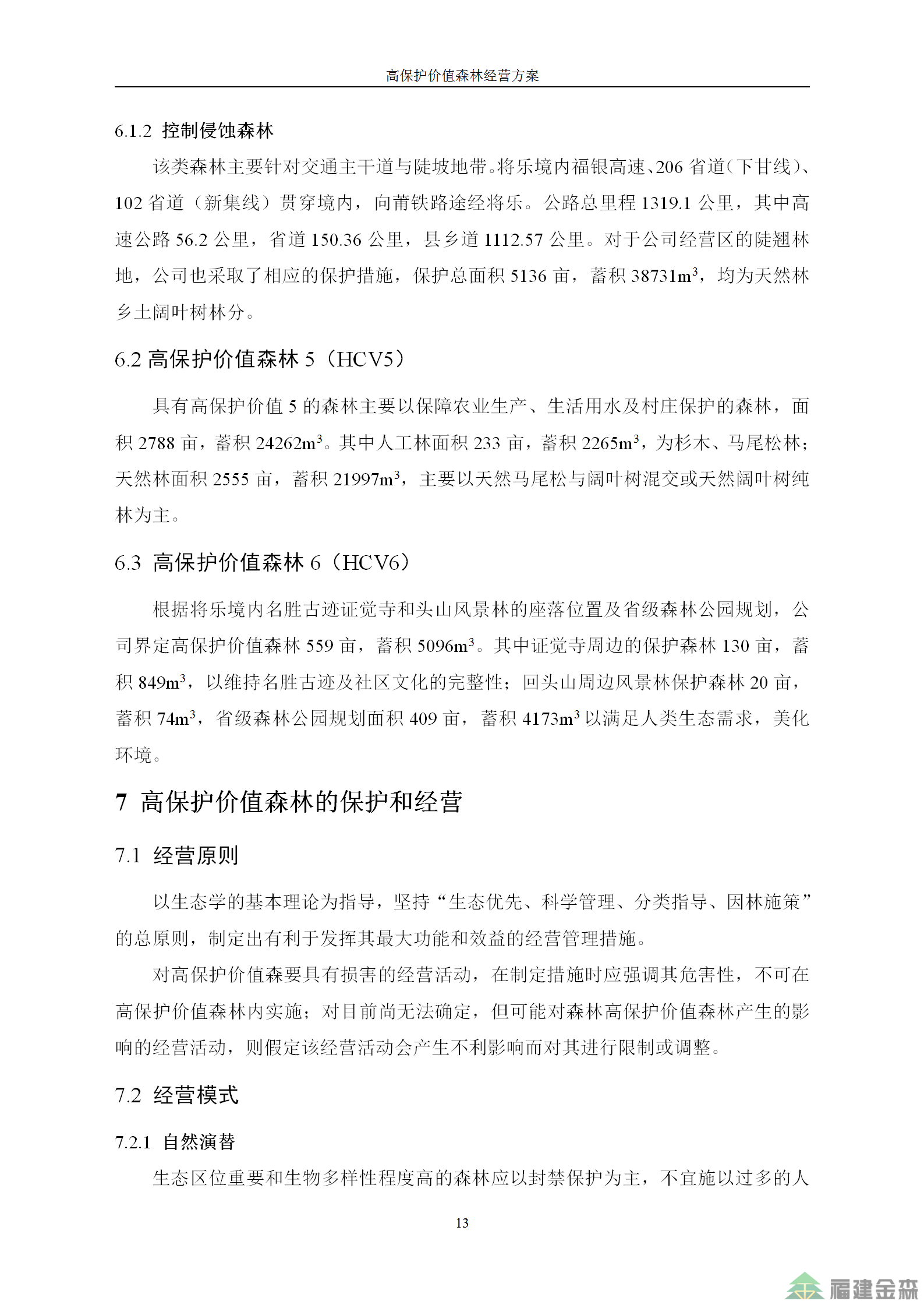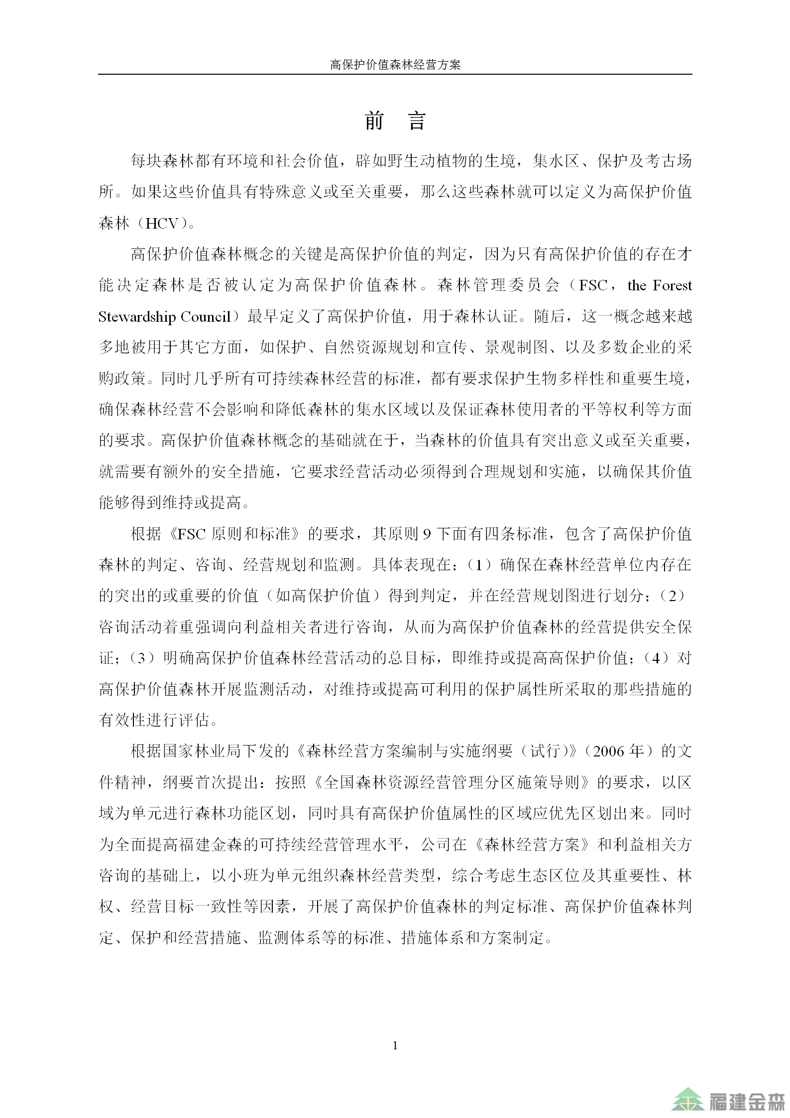福建金森林業(yè)股份有限公司高保護(hù)價(jià)值森林經(jīng)營(yíng)方案