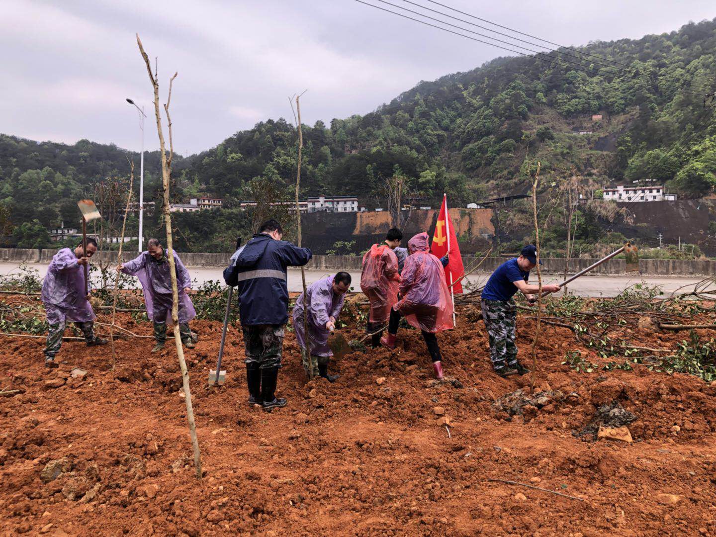 黨員們發(fā)揮先鋒帶頭作用,保證自身勞動進度,同時協(xié)調(diào)人員,維持現(xiàn)場秩序及效率。植樹現(xiàn)場是一派緊張有序的勞動景象,參加植樹的干部職工個個熱情洋溢、干勁十足,有的運樹苗,有的舞鋤頭,你追我趕,比干勁,比進度,各個環(huán)節(jié)銜接有序,樣樣做得認真到位,個個忙得滿頭大汗。到處都是忙碌的身影。