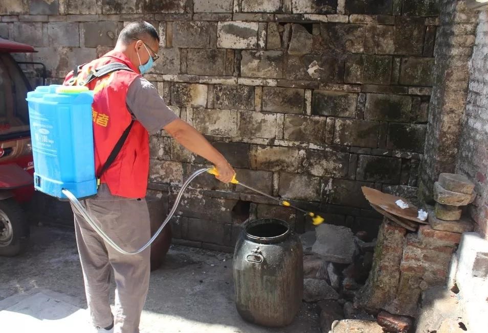 使用噴霧器和專業(yè)滅殺藥劑深入各基層單位,選擇容易孽生蟲卵,成蚊的閑置水池積水、廢棄容器積水、污水坑,進行化學(xué)滅殺。